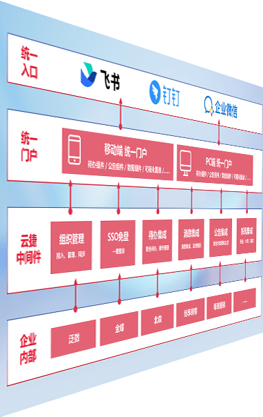 对协作平台提供支持服务,,支持企业应用与协作平台对接,,,,包含组织同步、、、、消息集成、、、待办集成等。。支持目前主流的协作平台:钉钉、、企微和飞书。。。。